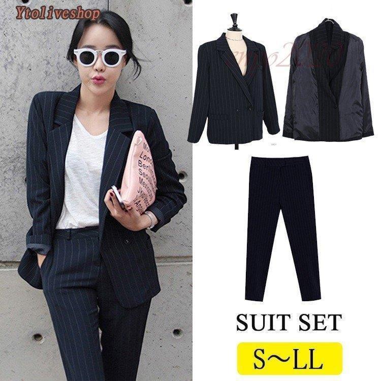レディース2点セット ストライプ ビジネススーツ セットアップスーツ フォーマルスーツ 通勤 Ol オフィス パンツスーツ